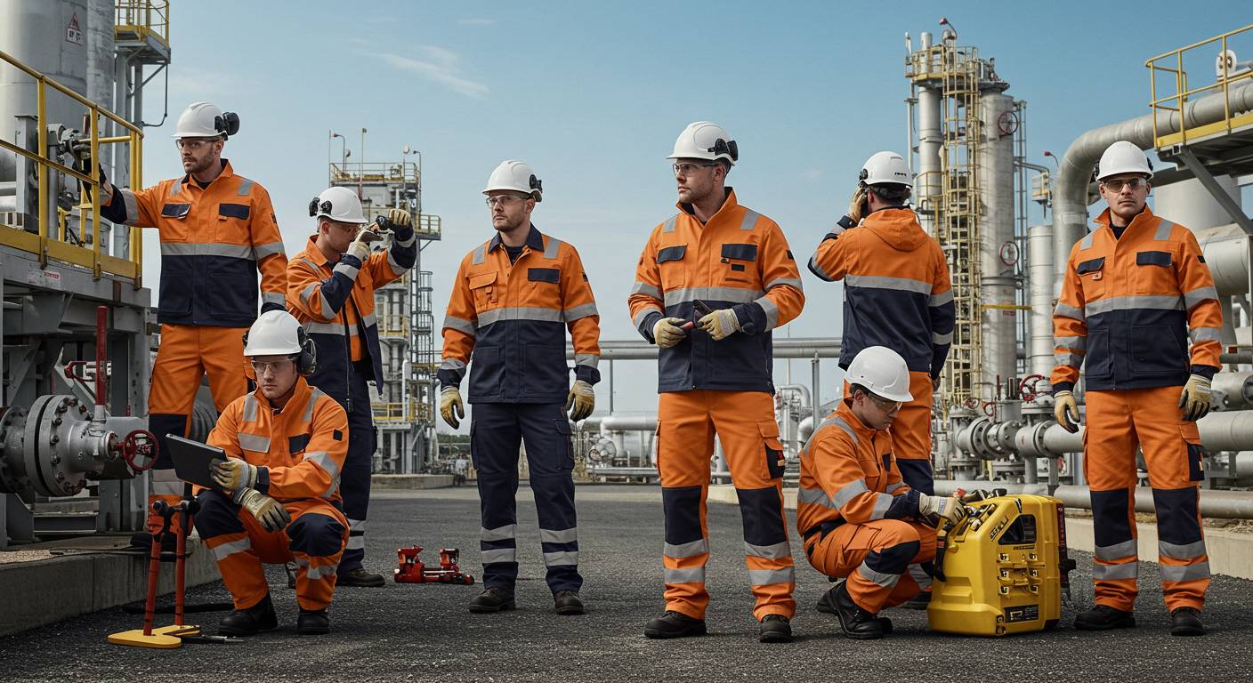 Фурнитура также имеет ключевое значение: молнии, кнопки и застёжки должны выдерживать интенсивное использование и высокие температуры, не теряя функциональности. Ткани проходят обработку, повышающую водо- и грязеотталкивающие свойства, что облегчает уход и продлевает срок службы формы. Важным аспектом является сочетание защиты и лёгкости, чтобы одежда не мешала работе и не вызывала перегрева, что критично для сотрудников, работающих в экстремальных условиях.
